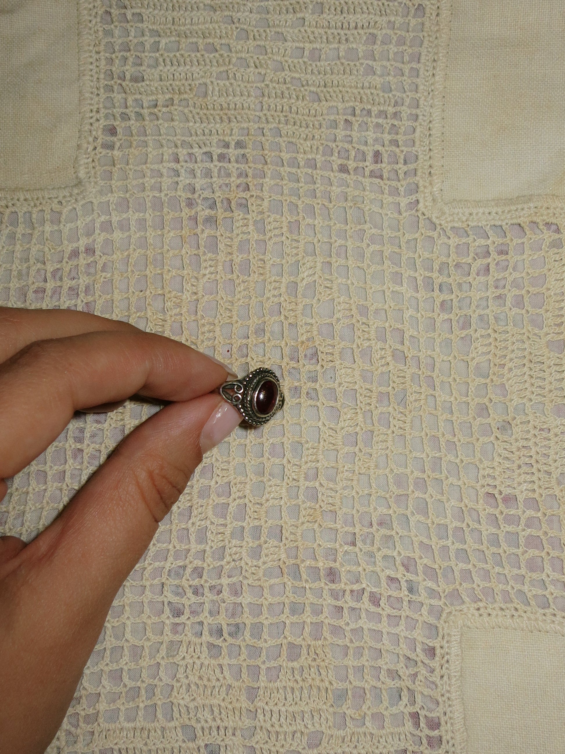 - Vintage silver ring with red precious stone